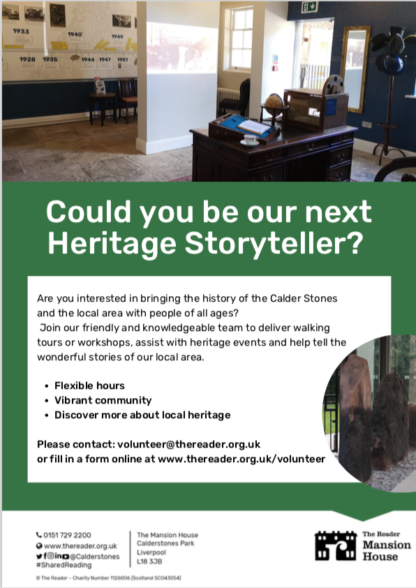 The Reader is looking for a volunteer heritage story teller, bringing the history of Calder Stones to people of all ages.
