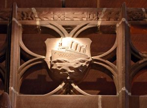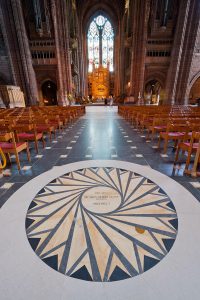 A delightful story was of King George V coming to sign a document, and a piece of stale bread being in readiness for removing any error in the signature (the bread proved to be unnecessary). The cathedral was built by many hands and descendants of the masons and workmen often come to visit, sometimes providing further insights into the process of building. Exhibitions – which are facilitated by the collections of archives – have covered such topics as the Blitz, the Battle of the Atlantic, the Centenary of the Lady Chapel, Titanic 2012, and the King’s Liverpool Regiment in World War One. Various groups concerned with archives maintain contact, supporting the efforts of Canon Jackson and her team. These include Hope University and the National Archives, which underlines the importance of the archives. A memorial to nurses turns out to include many from Wales and other places, as well as Liverpool itself. The archives, like other aspects of the Cathedral, are supported by the Friends of Liverpool Cathedral. It was interesting to learn that the stone used at the West End of the Cathedral at the building’s completion is inferior in quality to the Woolton stone used in the rest of the Cathedral. It was also interesting to learn that the inventory of the Cathedral silver runs to two hundred pages, and that Edward Carter Preston, who produced a series of iconic sculptures for the Cathedral also designed commemorative medals for World War 1.